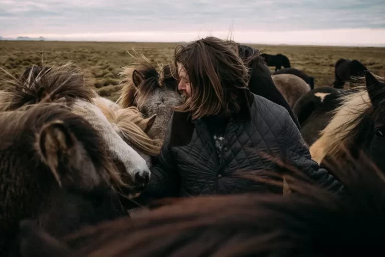 When asked how their nervous systems have evolved to be so even-keeled through the centuries, Hordur points out that Icelandic horses have no natural predators. They are exposed to the elements, he explains, and they prefer to weather Iceland’s brutal winters not alone in barn stalls, not in “an empty house” of creation, but with their fellow horses in an open field.